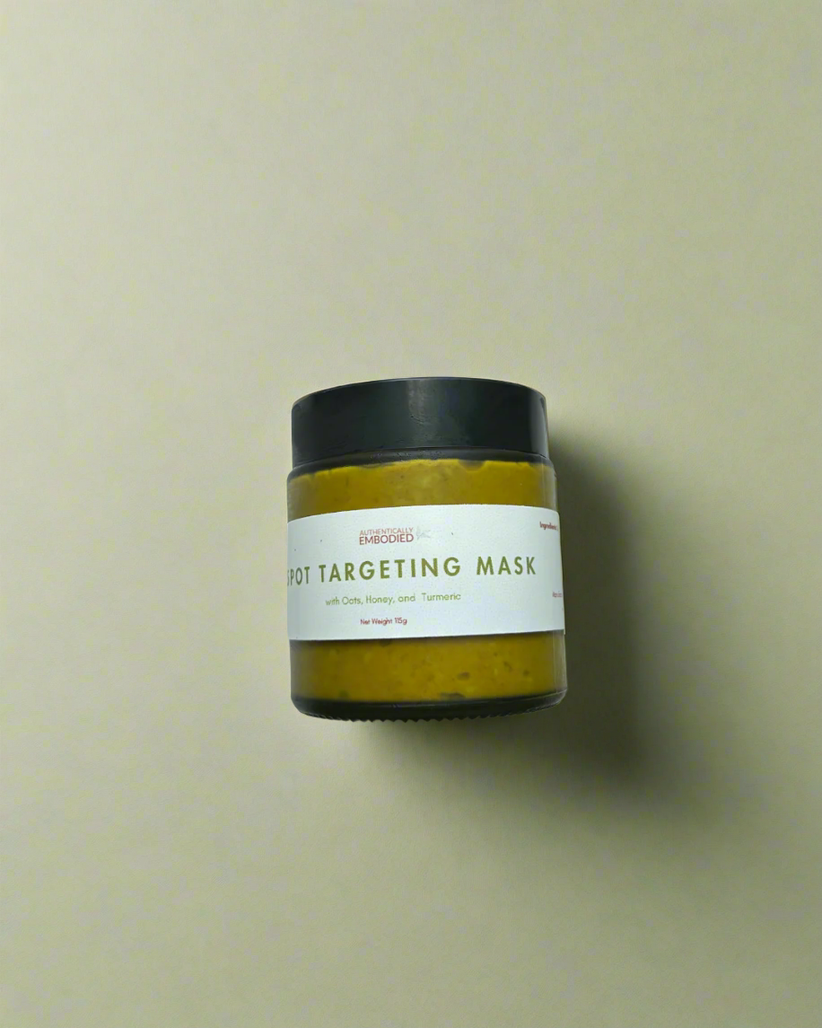 Our Spot Targeting Mask is crafted with: Lemon, Rose Water, Honey, Aloe Vera, Oatmeal, Turmeric, Leucidal Liquid